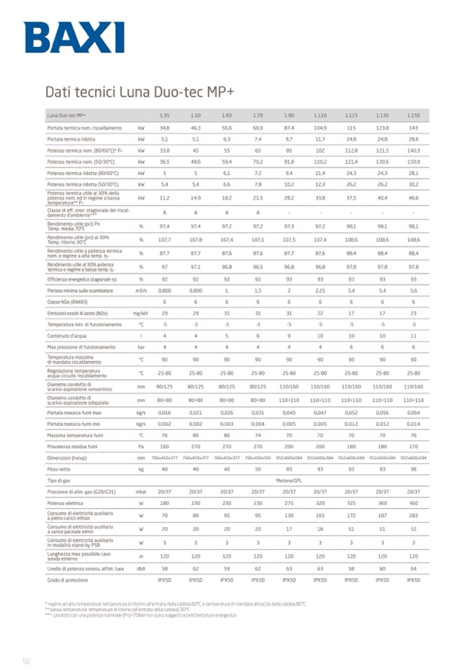 Potenza termica ridotta (50/30°C)