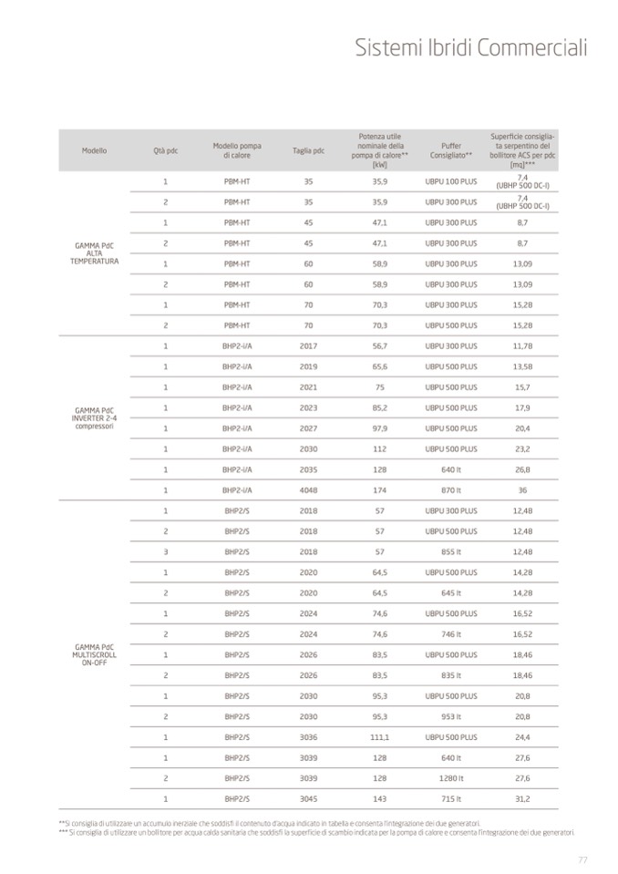 *** Si consiglia di utilizzare un bollitore per acqua calda sanitaria che soddisfi la superficie di scambio indicata per la pompa di calore e consenta l’integrazione dei due generatori.