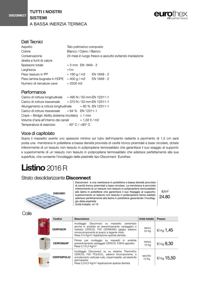 superficie, che consente l’incollaggio delle piastrelle tipo Disconnect Eurothex