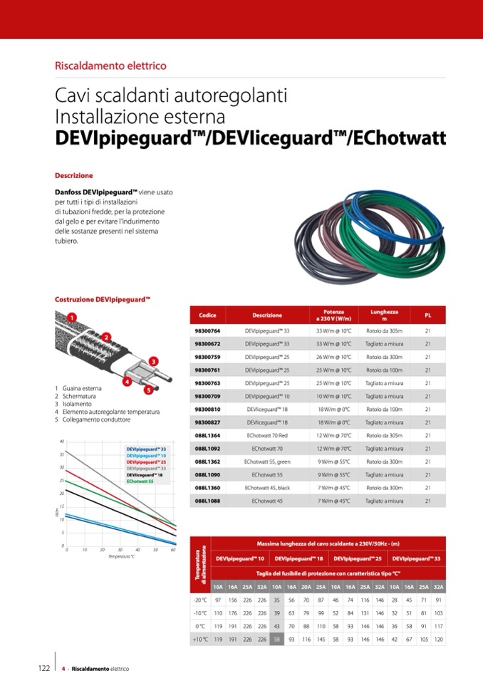 Massima lunghezza del cavo scaldante a 230V/50Hz - (m)