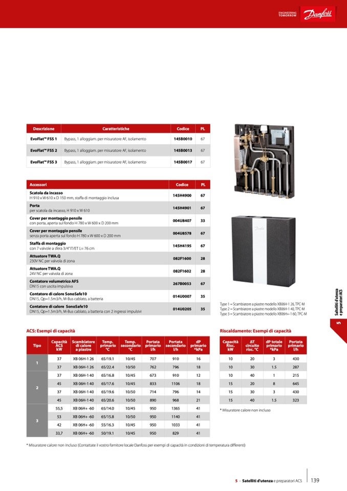 * Misuratore calore non incluso (Contattate il vostro fornitore locale Danfoss per esempi di capacità in condizioni di temperatura differenti)