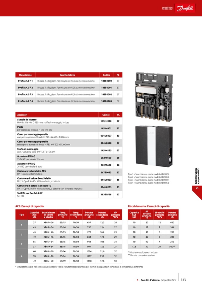 * Misuratore calore non incluso (Contattate il vostro fornitore locale Danfoss per esempi di capacità in condizioni di temperatura differenti)