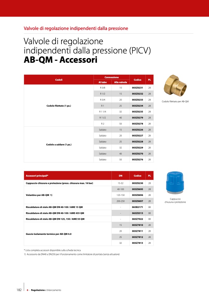 1) Accessorio da DN40 a DN250 per il funzionamento come limitatore di portata (senza attuatore)
