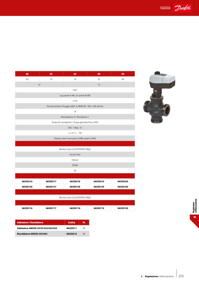 Tenuta ermetica "buggle right" A-AB/B-AB - AB≤ 1,0% del Kvs