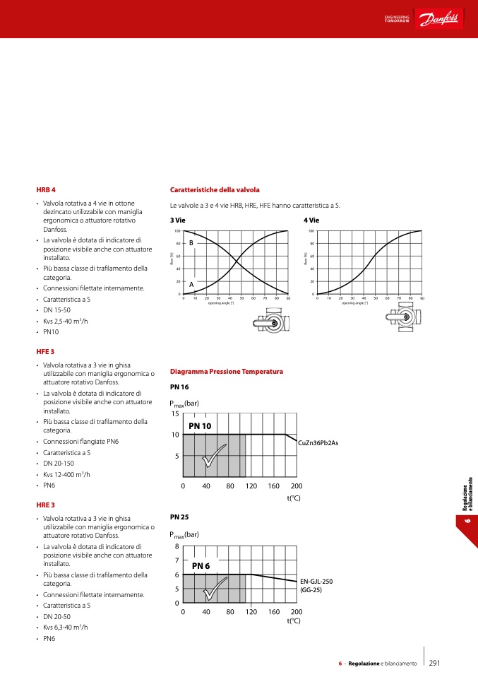 Le valvole a 3 e 4 vie HRB, HRE, HFE hanno caratteristica a S.