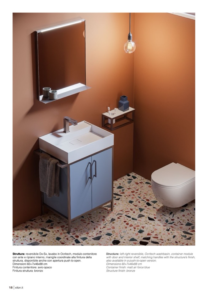Struttura: reversibile Dx-Sx, lavabo in Ocritech, modulo contenitore