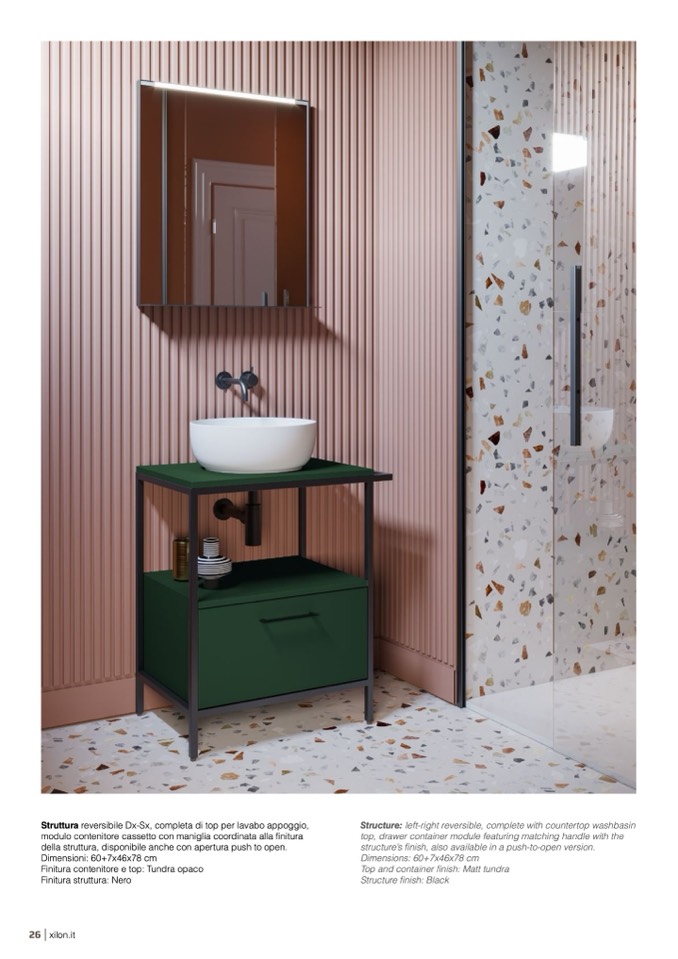 Struttura reversibile Dx-Sx, completa di top per lavabo appoggio,