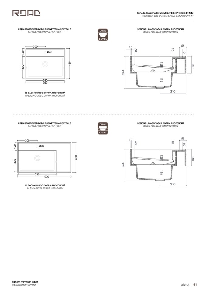 Schede tecniche lavabi MISURE ESPRESSE IN MM