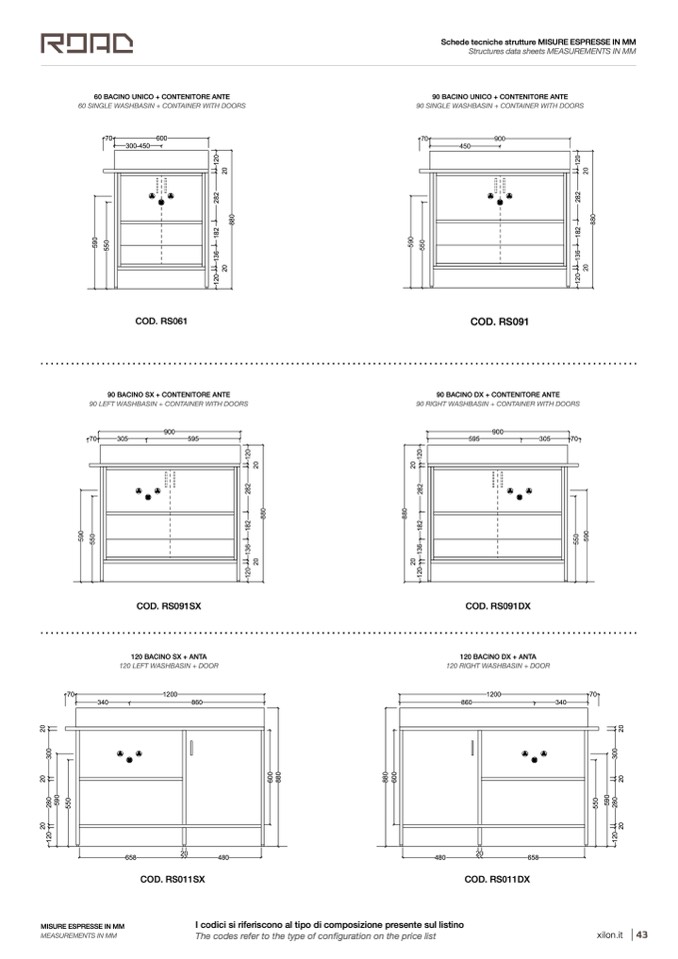 90 BACINO DX + CASSETTO 90 BACINO DX + CASSETTO