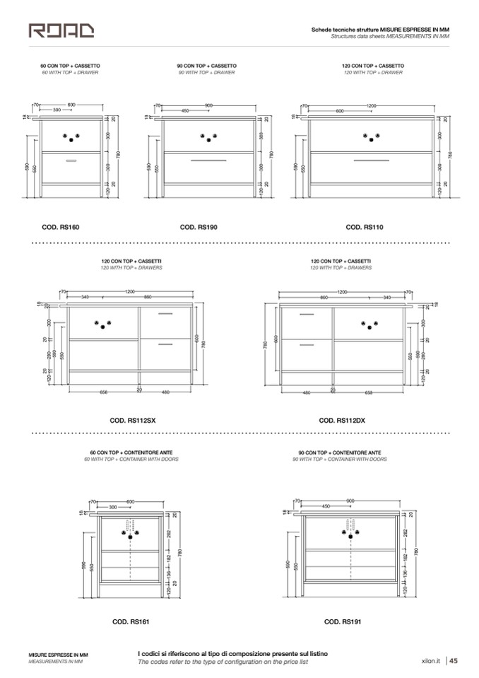 Schede tecniche strutture MISURE ESPRESSE IN MM