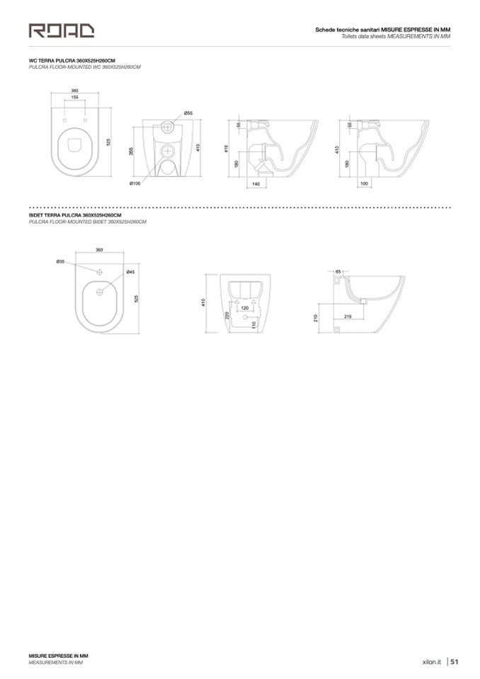 Toilets data sheets MEASUREMENTS IN MM