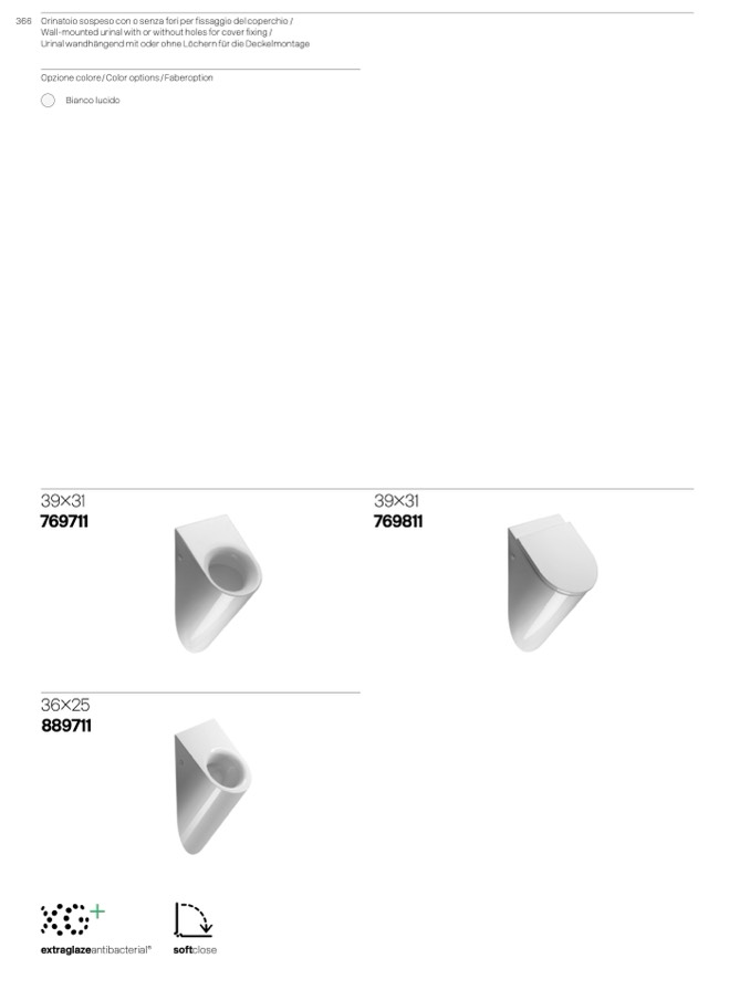 366 Orinatoio sospeso con o senza fori per fissaggio del coperchio /