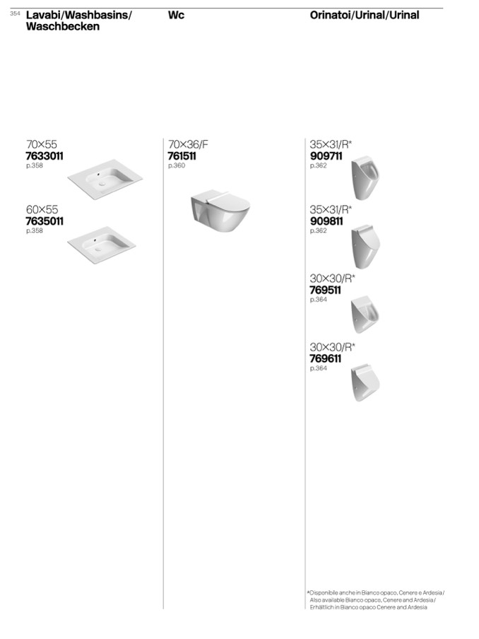 Erhältlich in Bianco opaco Cenere and Ardesia