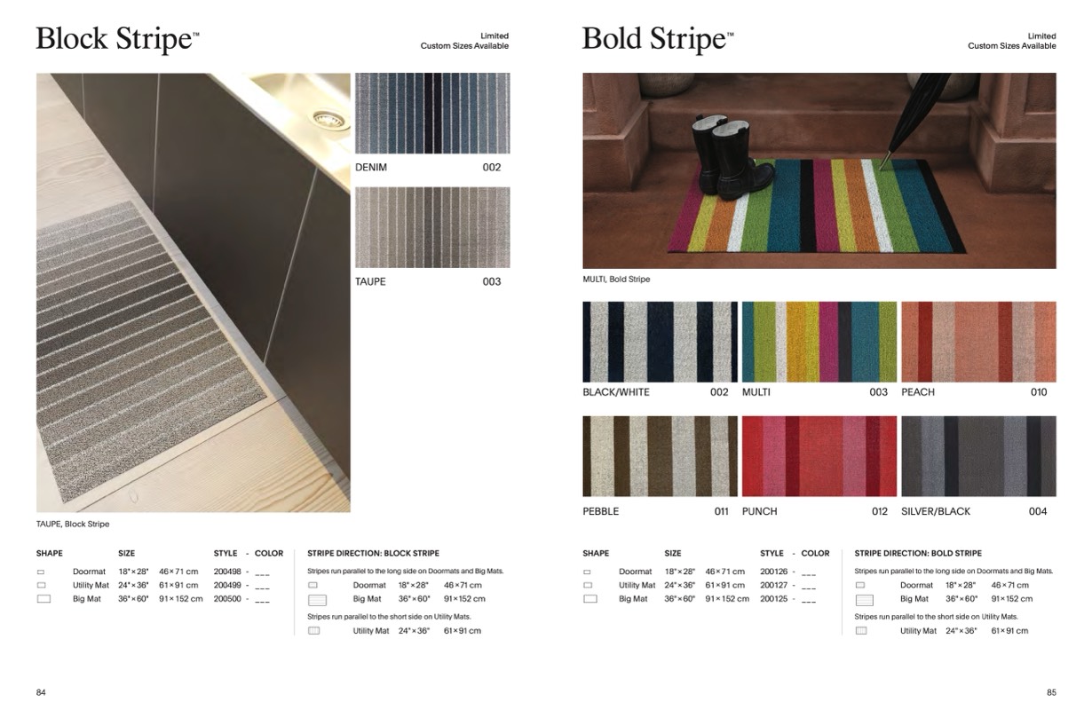 Stripes run parallel to the long side on Doormats and Big Mats.