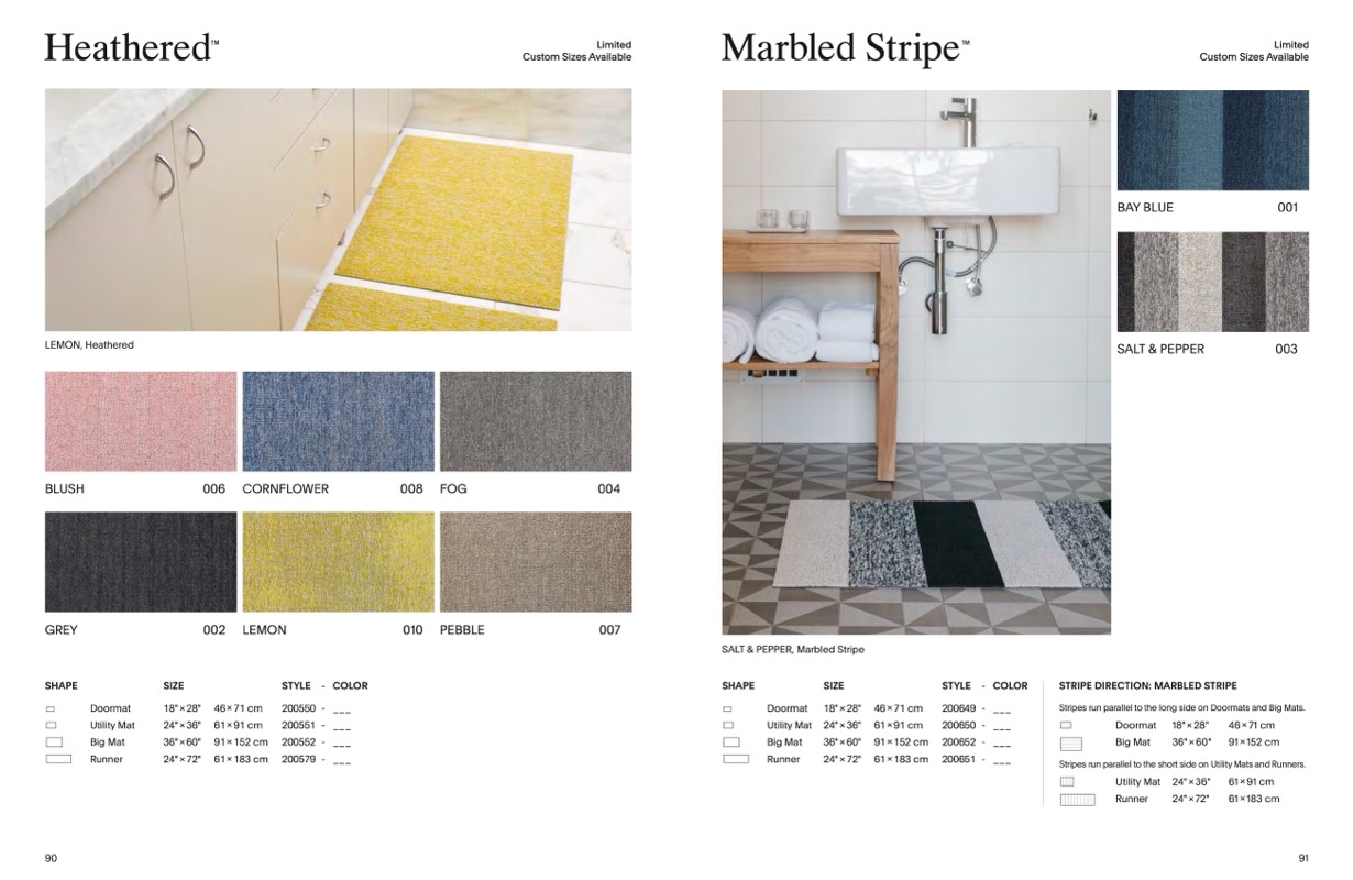 Stripes run parallel to the long side on Doormats and Big Mats.