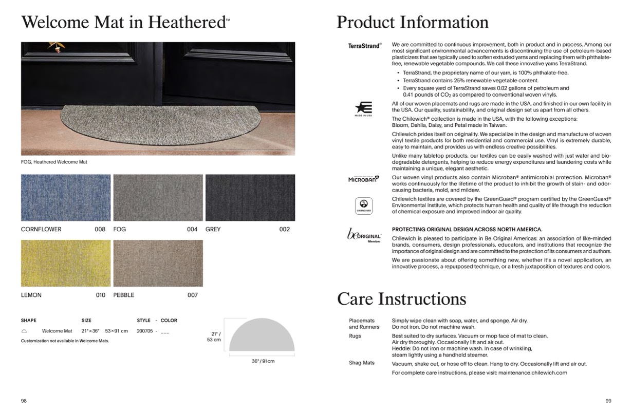 For complete care instructions, please visit: maintenance.chilewich.com