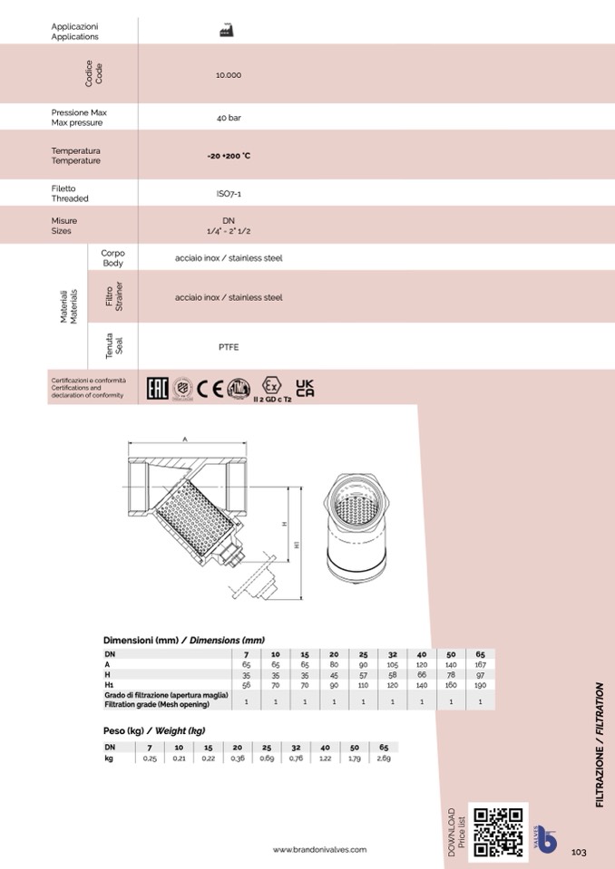 Grado di filtrazione (apertura maglia)