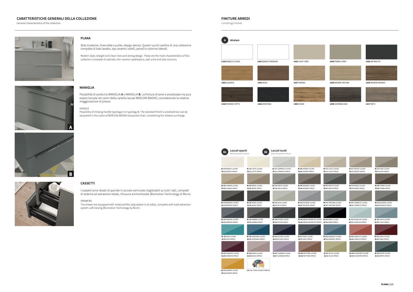 lacquered in the colors of BERLONI BAGNO lacquered chart, considering the relative surcharge.
