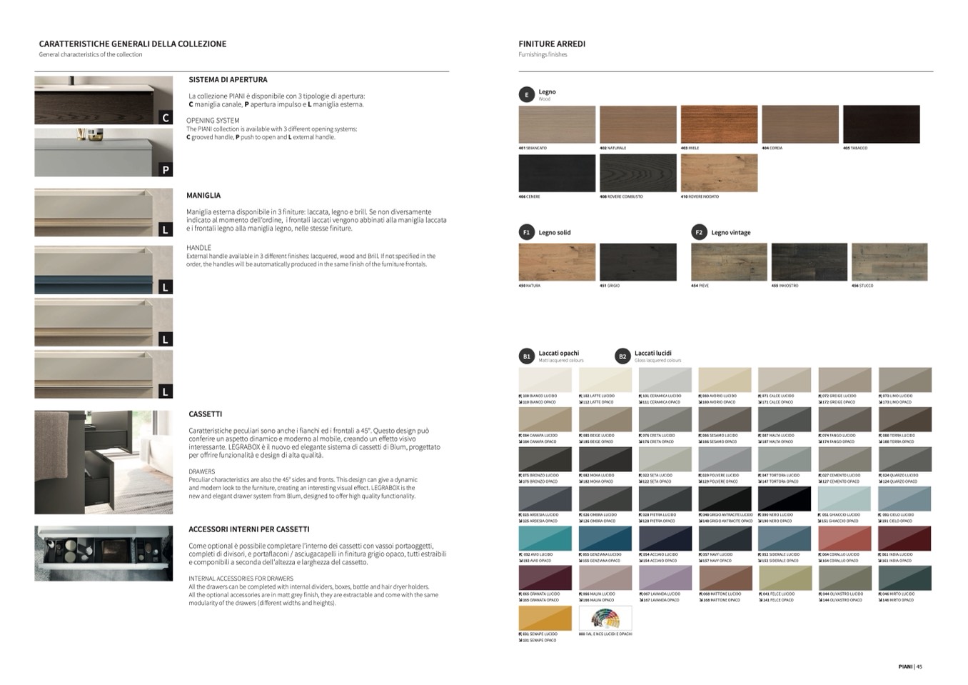 La collezione PIANI è disponibile con 3 tipologie di apertura: