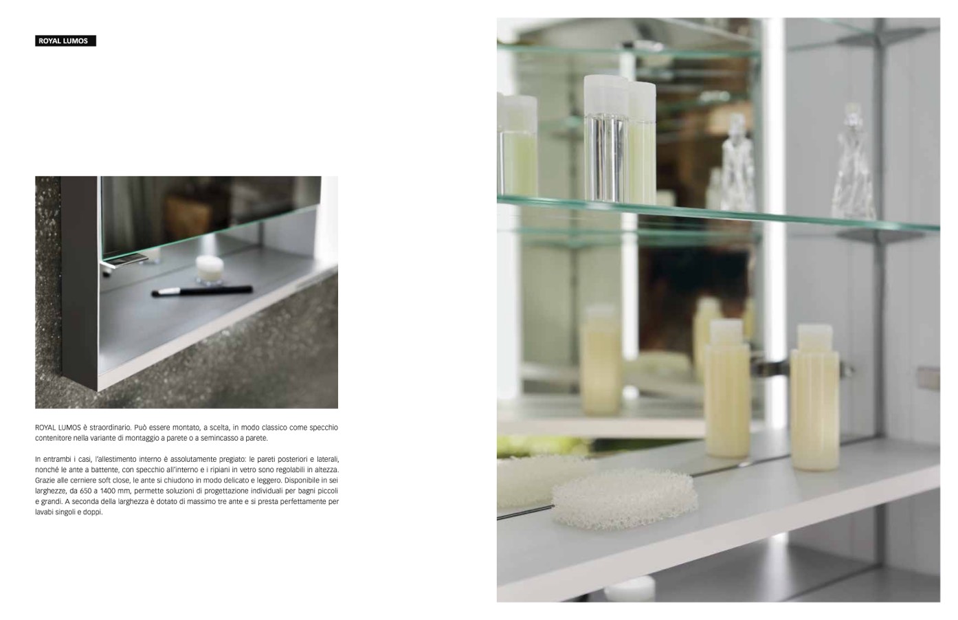 larghezze, da 650 a 1400 mm, permette soluzioni di progettazione individuali per bagni piccoli