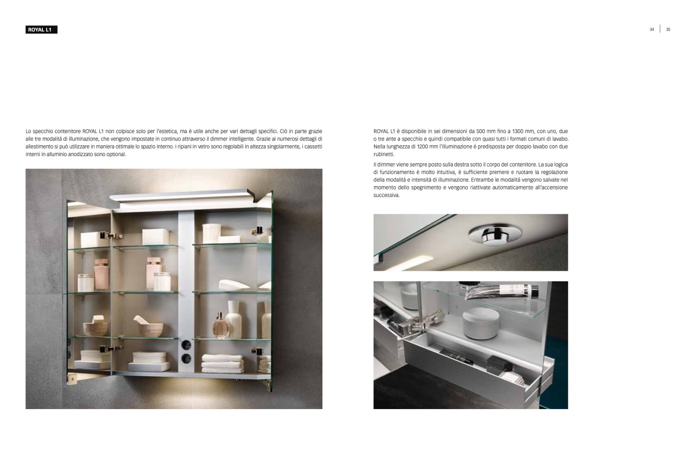 Lo specchio contenitore ROYAL L1 non colpisce solo per l’estetica, ma è utile anche per vari dettagli specifici. Ciò in parte grazie