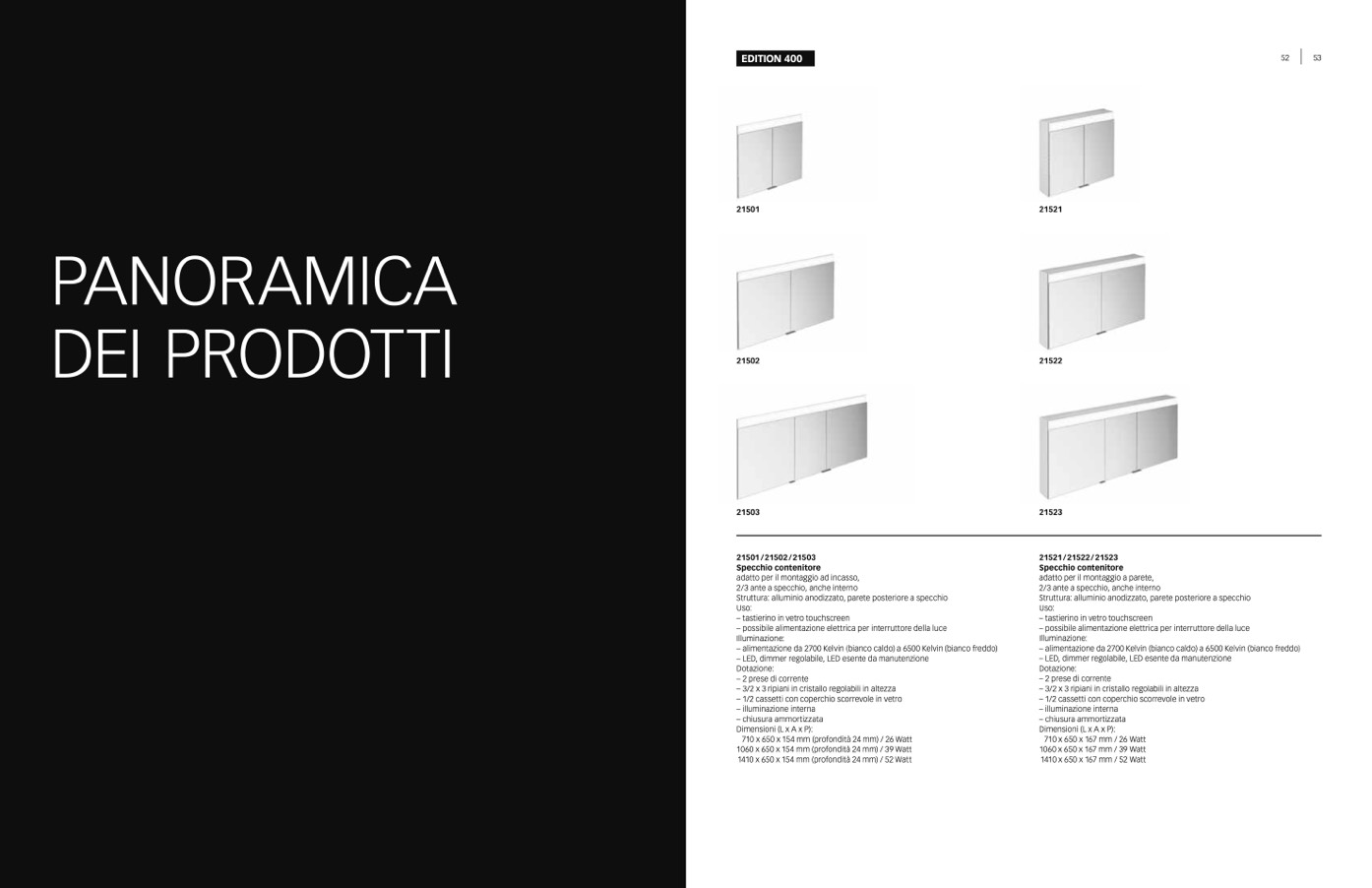 Struttura: alluminio anodizzato, parete posteriore a specchio