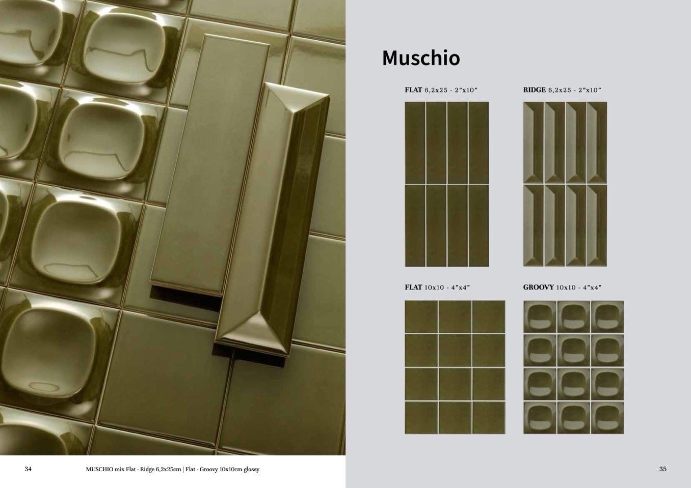MUSCHIO mix Flat - Ridge 6,2x25cm | Flat - Groovy 10x10cm glossy