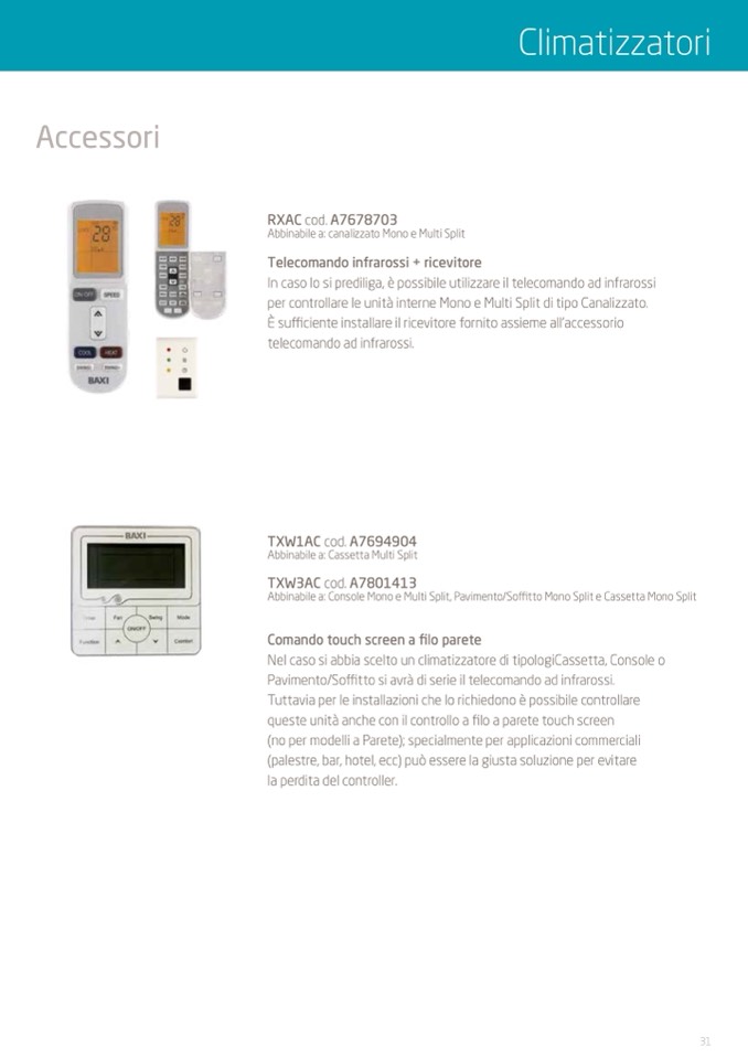 (no per modelli a Parete); specialmente per applicazioni commerciali