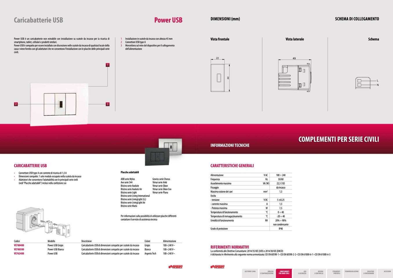 • Adattatori che consentono l’adattabilità con le principali serie civili