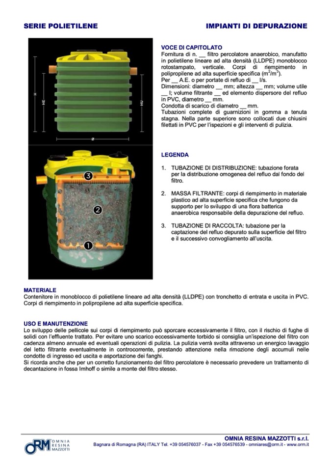 Bagnara di Romagna (RA) ITALY Tel. +39 054576037 - Fax +39 054576539 - omniares@orm.it - www.orm.it