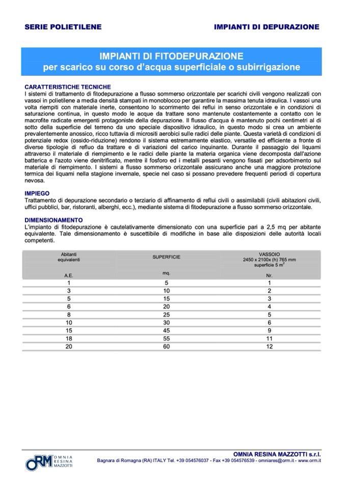 uffici pubblici, bar, ristoranti, alberghi, ecc.), mediante sistema di fitodepurazione a flusso sommerso orizzontale.