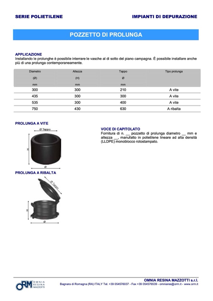 Fornitura di n. __ pozzetto di prolunga diametro __ mm e