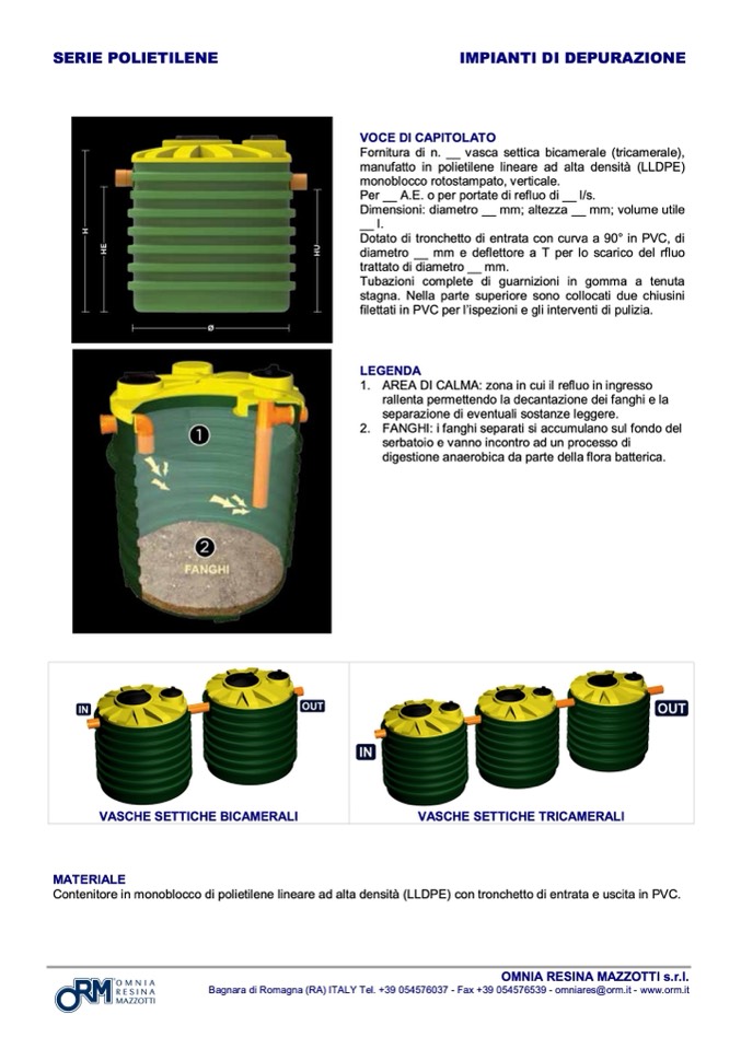 Fornitura di n. __ vasca settica bicamerale (tricamerale),