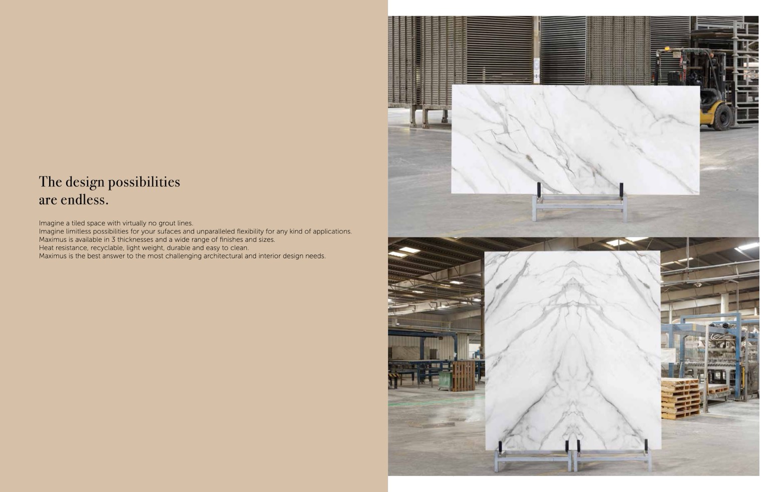 Maximus is available in 3 thicknesses and a wide range of finishes and sizes.
