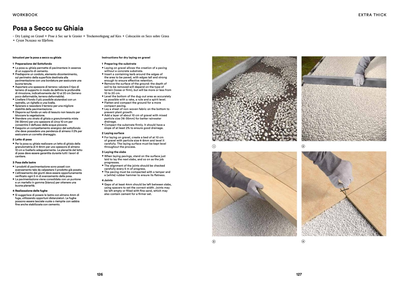 – Dry Laying on Gravel • Pose à Sec sur le Gravier • Trockenverlegung auf Kies • Colocación en Seco sobre Grava