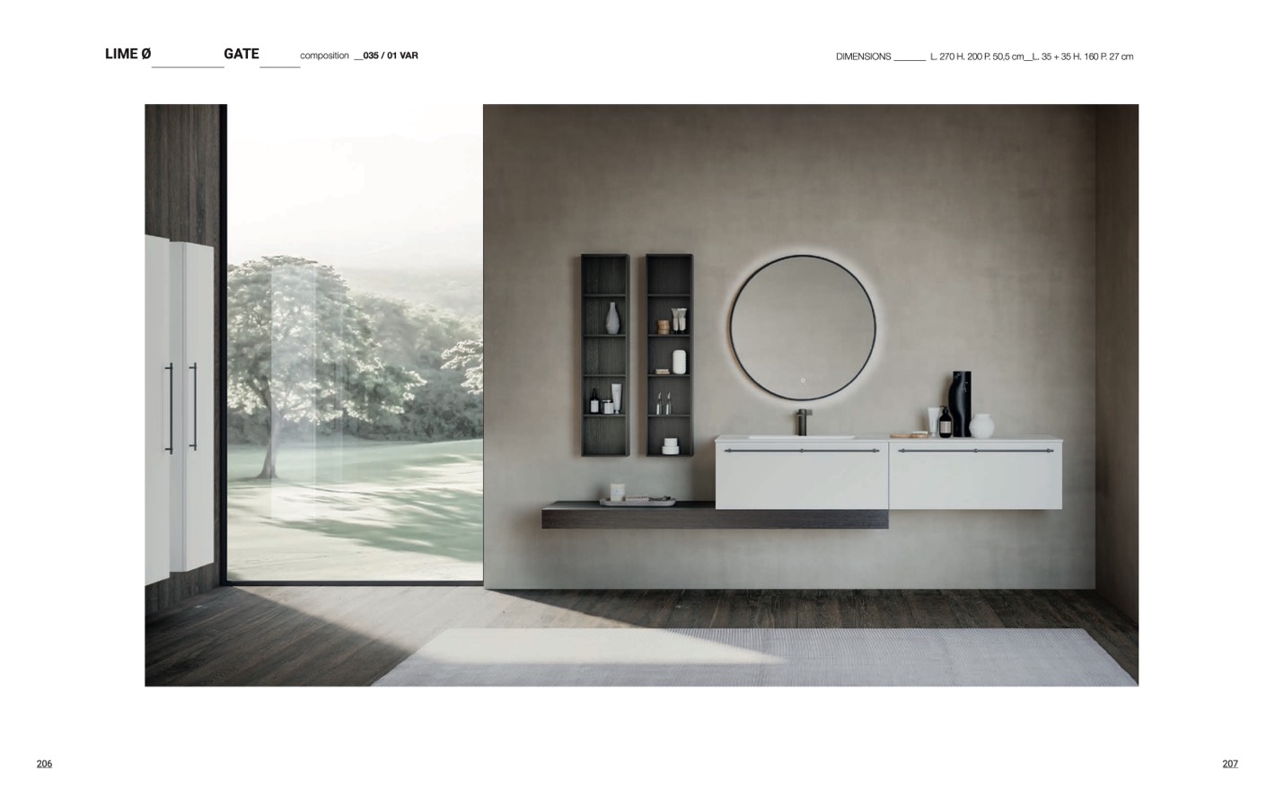DIMENSIONS _______ L. 270 H. 200 P. 50,5 cm__L. 35 + 35 H. 160 P. 27 cm