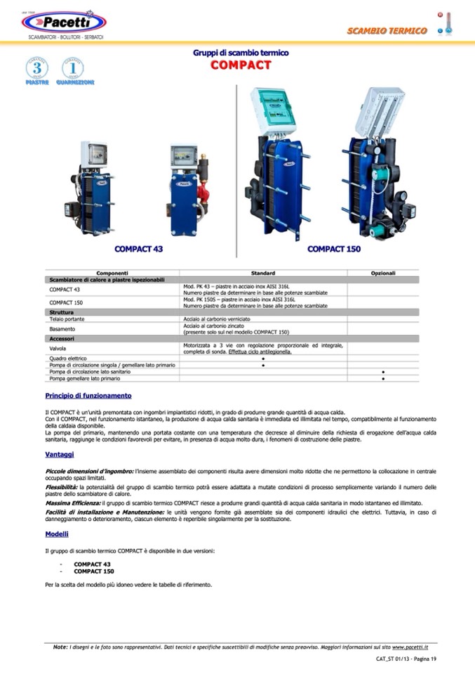 Il COMPACT è un’unità premontata con ingombri impiantistici ridotti, in grado di produrre grande quantità di acqua calda.