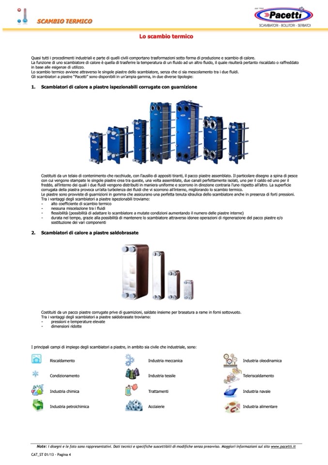 Gli scambiatori a piastre “Pacetti” sono disponibili in un’ampia gamma, in due diverse tipologie: