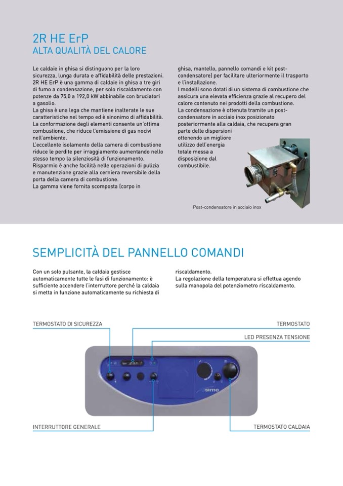 2R HE ErP è una gamma di caldaie in ghisa a tre giri