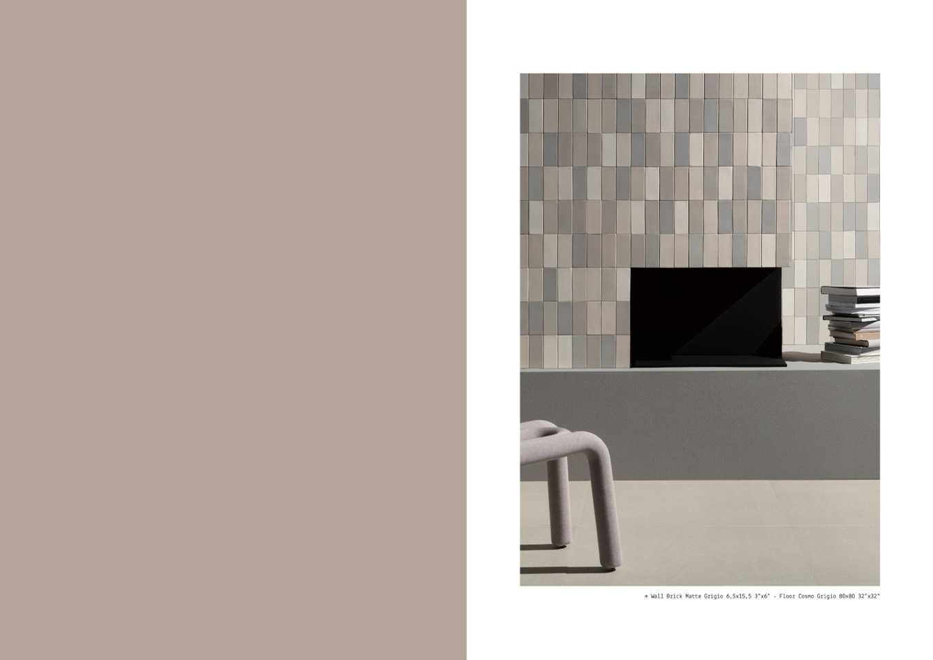 � Wall Brick Matte Grigio 6,5x15,5 3”x6” - Floor Cosmo Grigio 80x80 32”x32”