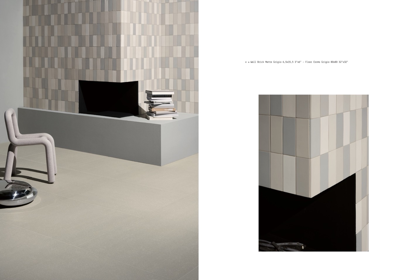 � � Wall Brick Matte Grigio 6,5x15,5 3”x6” - Floor Cosmo Grigio 80x80 32”x32”