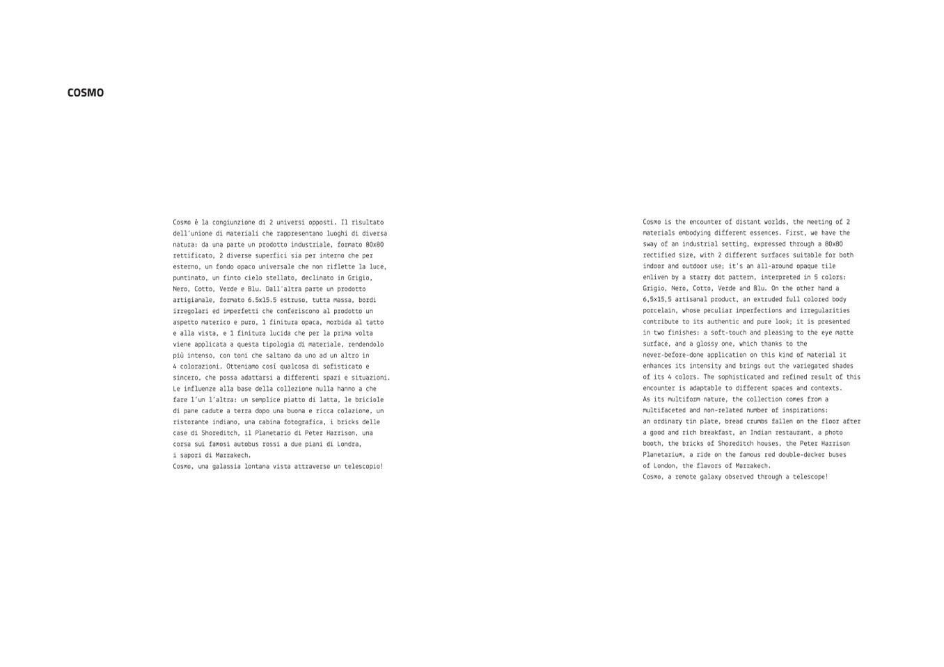 Cosmo is the encounter of distant worlds, the meeting of 2