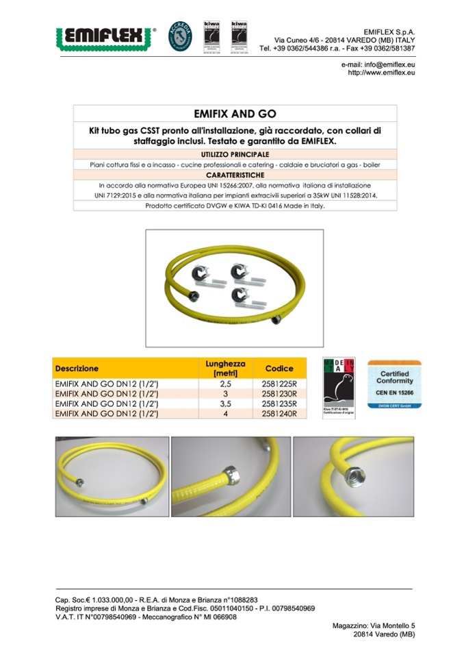 Prodotto certificato DVGW e KIWA TD-KI 0416 Made in Italy.