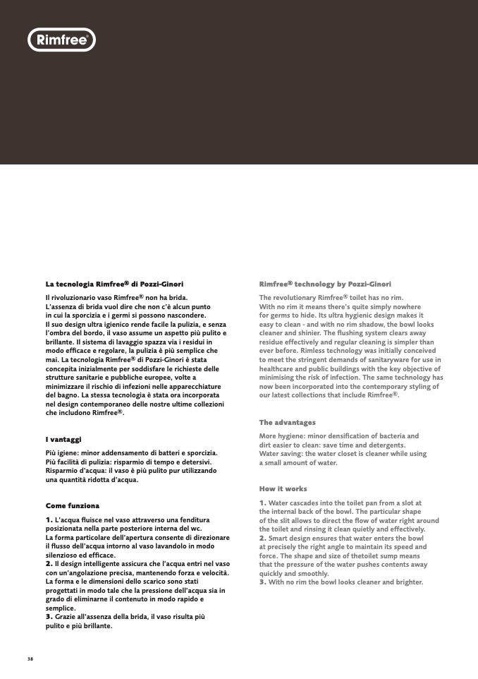 mai. La tecnologia Rimfree® di Pozzi-Ginori è stata