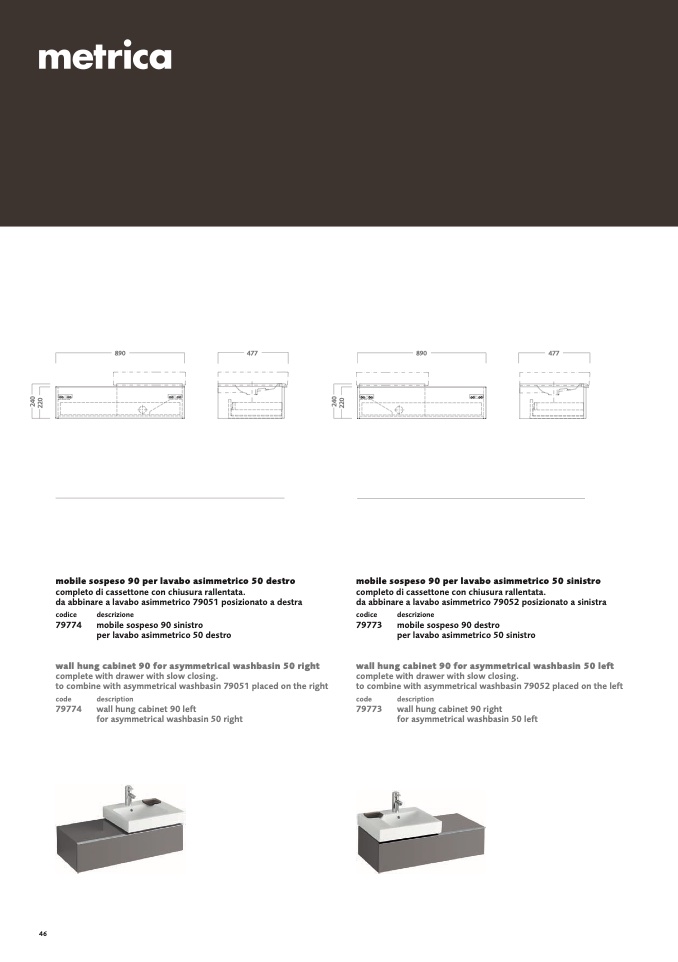 da abbinare a lavabo asimmetrico 79052 posizionato a sinistra