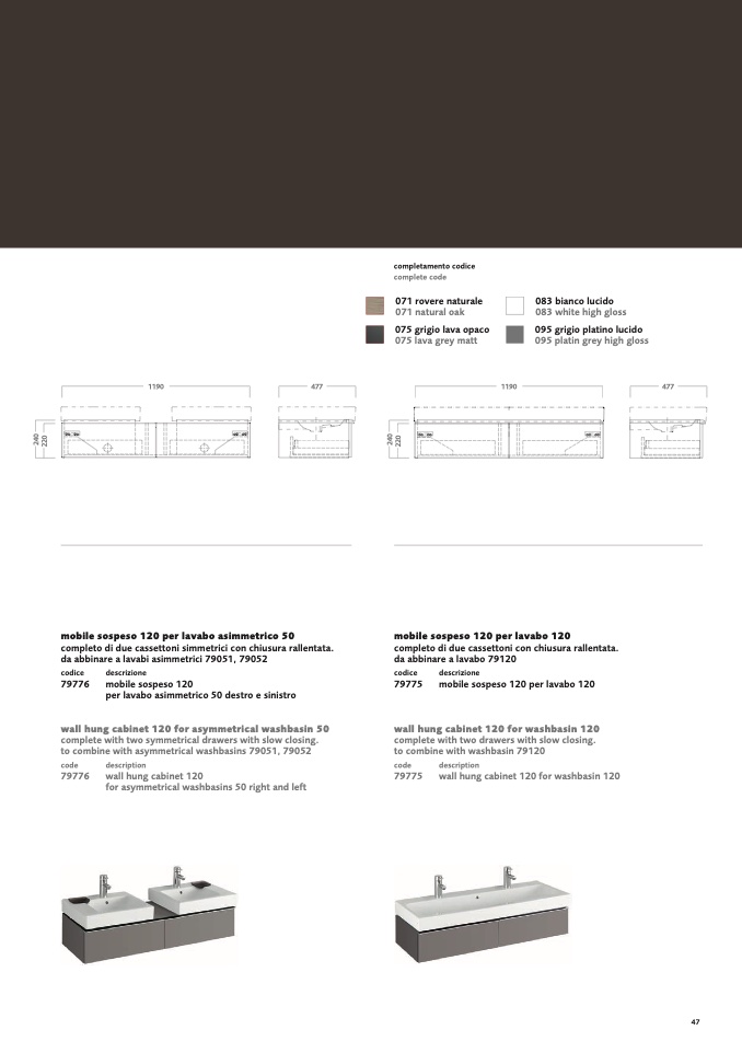wall hung cabinet 120 for asymmetrical washbasin 50