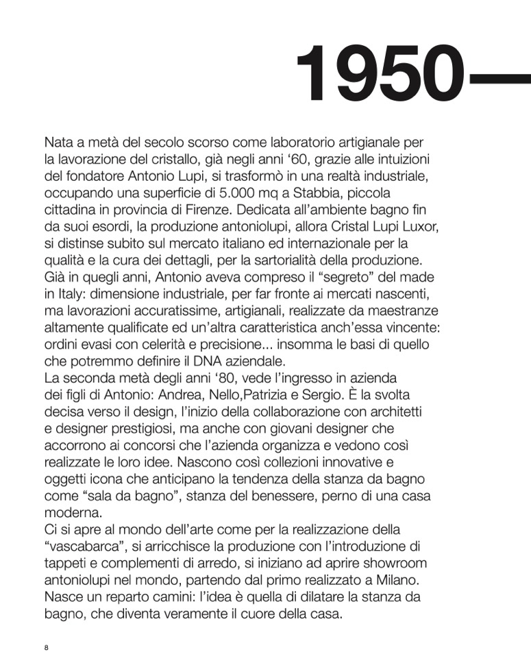 da suoi esordi, la produzione antoniolupi, allora Cristal Lupi Luxor,