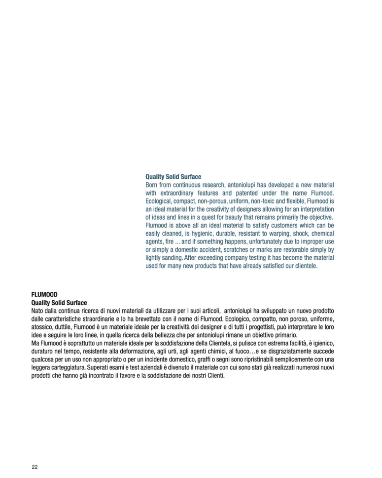 atossico, duttile, Flumood è un materiale ideale per la creatività dei designer e di tutti i progettisti, può interpretare le loro
