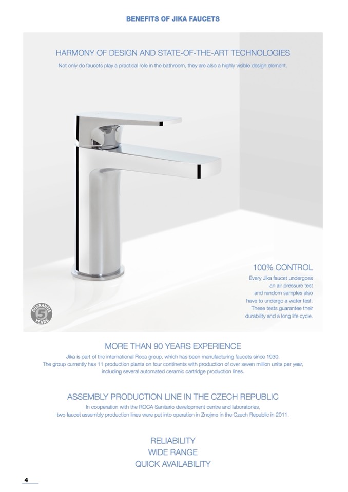 Jika is part of the international Roca group, which has been manufacturing faucets since 1930.