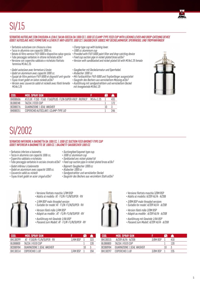 SERBATOIO INFERIORE A BAIONETTA DA 1000 CC. | 1000 CC SUCTION FEED BAYONET-TYPE CUP
